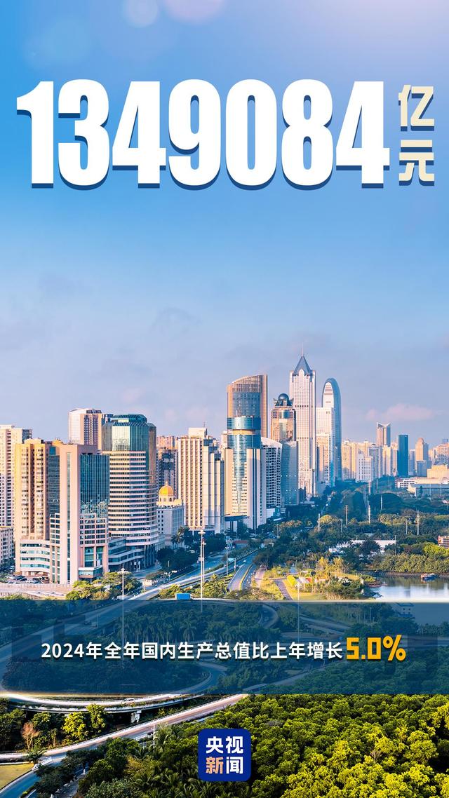 134.9萬億元,這是國家統(tǒng)計局最新公布的2024年中國經(jīng)濟總量,與2023年相比,增長了5%。
