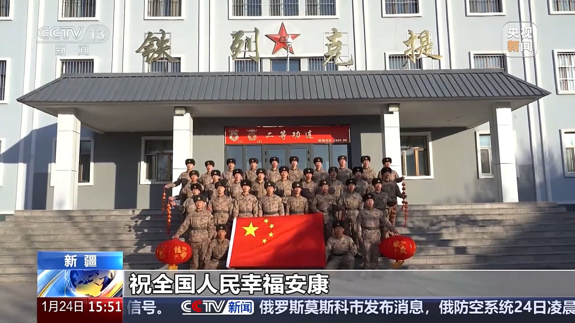 新疆塔城軍分區(qū)鐵列克提邊防連 張飛:當(dāng)時(shí)陣風(fēng)大概能到11級(jí)左右,這個(gè)旗桿我們還是把高度降低了,進(jìn)行了加厚加固處理,但還是沒有扛過今年這個(gè)冬天。