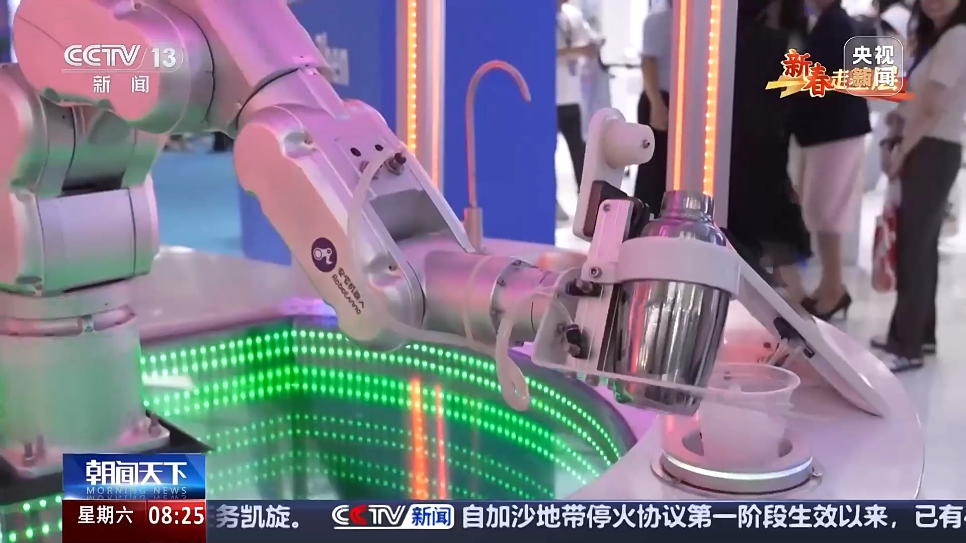 安諾機器人(深圳)有限公司創(chuàng)始人 黃煌:這些動作都是我們提前通過捕捉好咖啡師的動作,然后經(jīng)過訓練之后來用機器人實現(xiàn)的,我們牛奶都將近用了三噸左右。