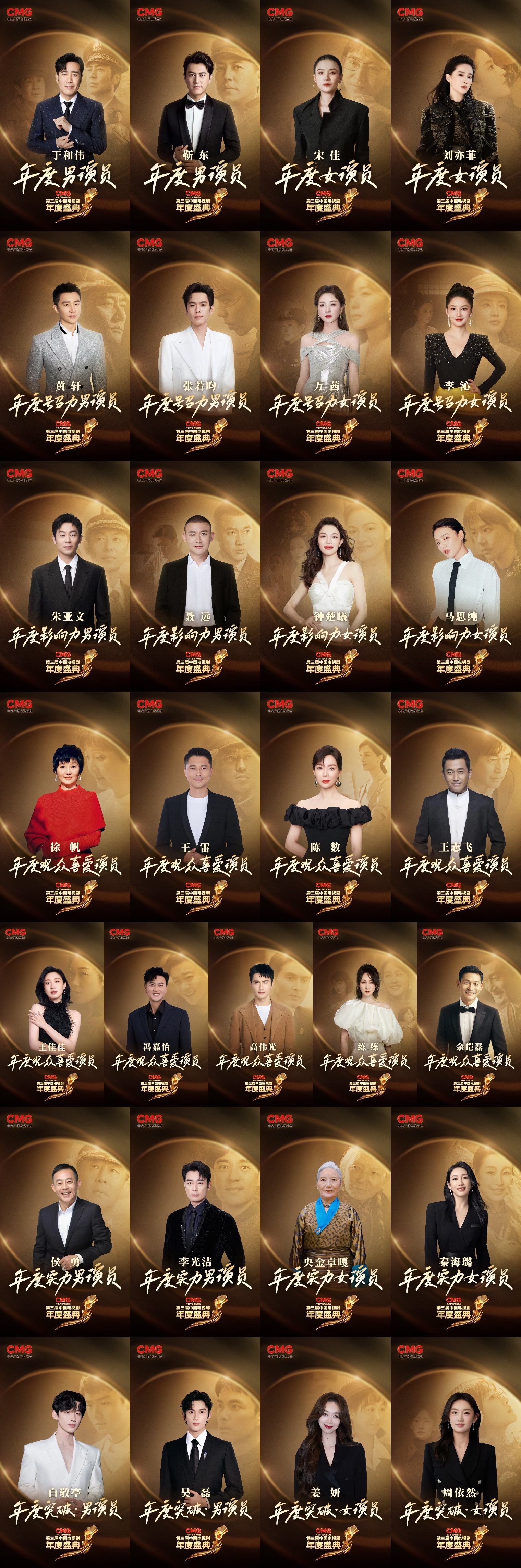 憑借深入人心的熒屏形象,演員于和偉、靳東,宋佳、劉亦菲贏得了觀眾和行業(yè)的高度認可,分別獲得“年度男演員”“年度女演員”榮譽;頗具“觀眾緣”的黃軒、張若昀,萬茜、李沁,分別獲得“年度號召力男演員”“年度號召力女演員”榮譽;朱亞文、聶遠,鐘楚曦、馬思純以細膩的人物刻畫喚起觀眾的廣泛共鳴,分別獲得“年度影響力男演員” “年度影響力女演員”榮譽;塑造出生動鮮活角色形象的徐帆、王雷、陳數(shù)、王志飛、王佳佳、馮嘉怡、高偉光、練練、余皚磊,獲得“年度觀眾喜愛演員”榮譽;侯勇、李光潔,央金卓嘎、秦海璐以不著痕跡、潤物無聲的表演,分別獲得“年度實力男演員”“年度實力女演員”榮譽;不斷探索表演邊界的白敬亭、吳磊,姜妍、周依然,分別獲得“年度突破·男演員”“年度突破·女演員”榮譽。