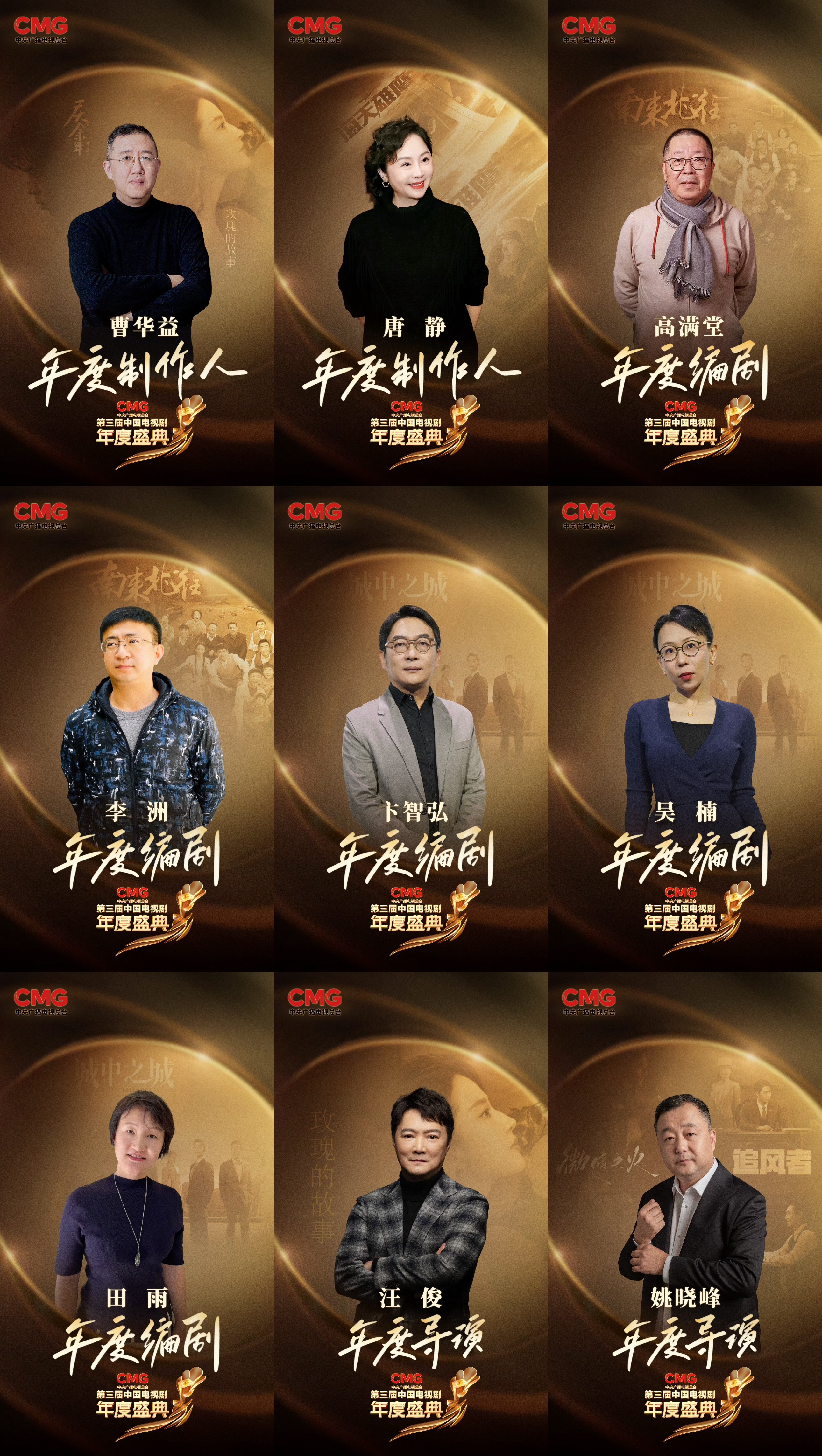 在創(chuàng)作創(chuàng)新與技術革新雙重驅(qū)動下,中國電視劇幕后工作者踔厲奮發(fā)、推陳出新,打磨出反映新時代、新氣象、新成就的誠意之作?!睹倒宓墓适隆贰稇c余年第二季》出品人曹華益、《海天雄鷹》出品人唐靜;《南來北往》編劇高滿堂、李洲,《城中之城》編劇卞智弘、吳楠、田雨;《玫瑰的故事》導演汪俊、《微暗之火》《追風者》導演姚曉峰分別獲得“年度制作人”“年度編劇”“年度導演”榮譽。