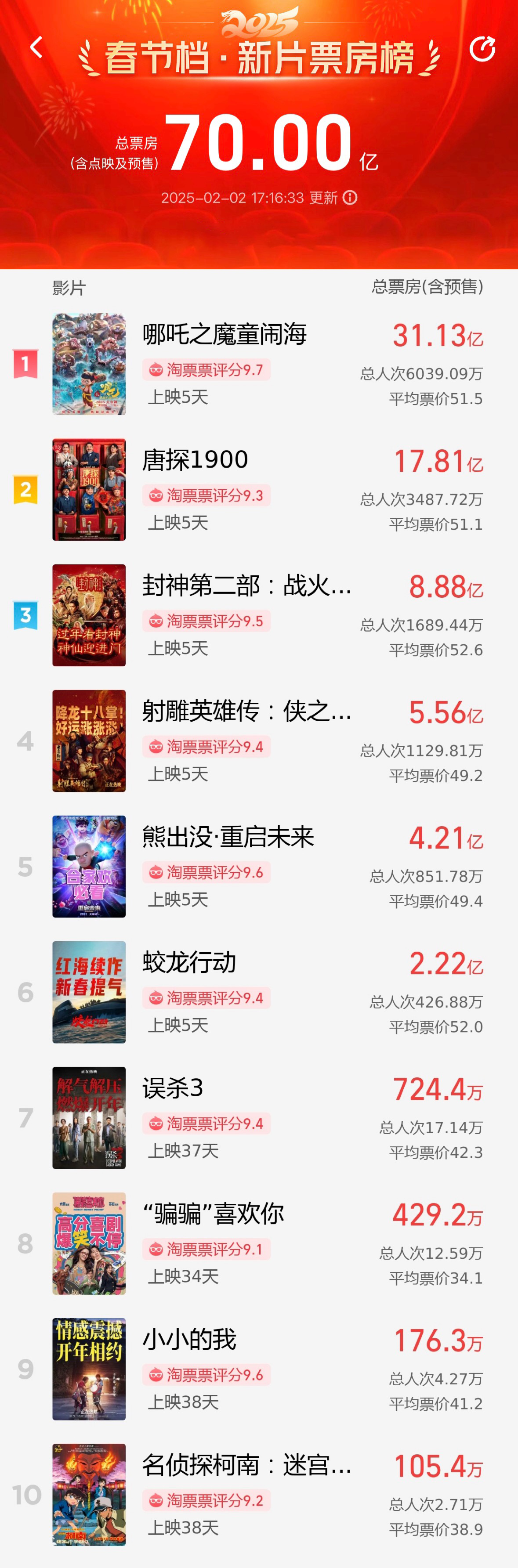 2025年春節(jié)檔(1月28日—2月4日)檔期