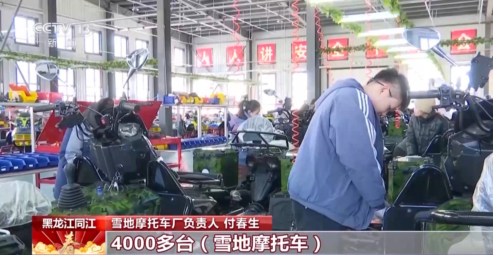 雪地摩托車廠負(fù)責(zé)人 付春生:去年我們接了很多訂單,2025年訂單我們已經(jīng)接4000多臺雪地摩托車了,其中國外的是3000多臺,主要是俄羅斯,還有東歐國家。