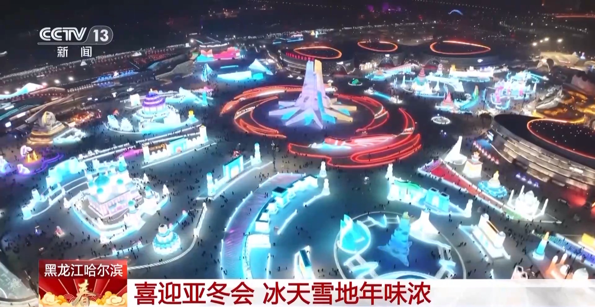 總臺記者 任秋宇:不僅亞冬會(huì)氛圍濃厚,園區(qū)當(dāng)中也是年味十足,您看春節(jié)期間,哈爾濱冰雪大世界又上新了一些春節(jié)的冰雕。