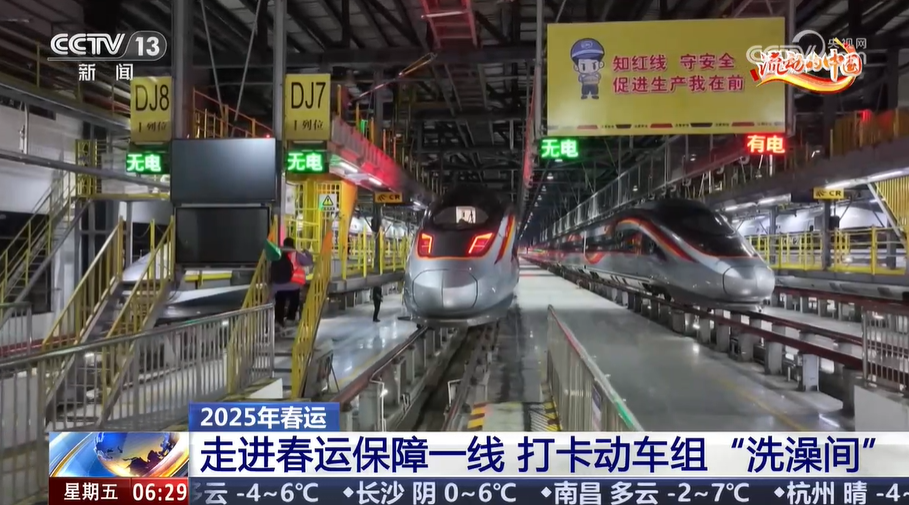 春運(yùn)期間,旅客平安出行的背后是數(shù)千組奔馳在祖國大江南北的動(dòng)車組。白天,列車日行千里,而到了午夜時(shí)分,它們就進(jìn)入專屬的“保養(yǎng)驛站”進(jìn)行必要的清洗工作。從里到外,保潔員們連夜給列車好好地“洗個(gè)澡”,確保次日干凈上線。接下來,我們就跟隨記者的鏡頭一起去到江西南昌,打卡高鐵動(dòng)車組的“洗澡間”。