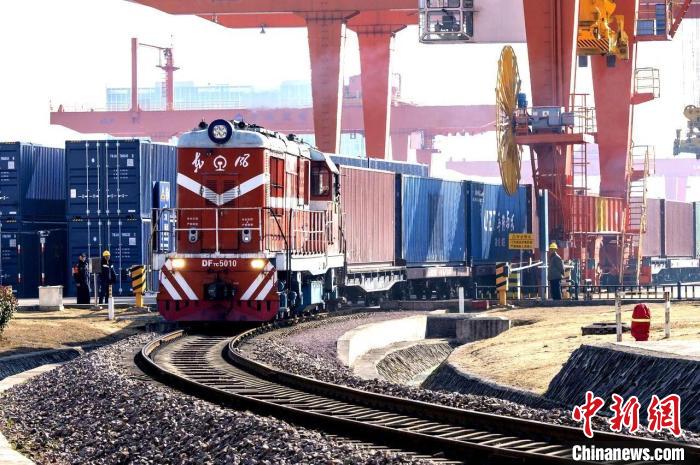 近日,一列裝載著100個標箱貨物的中歐班列從浙江金華駛往中亞。胡肖飛攝