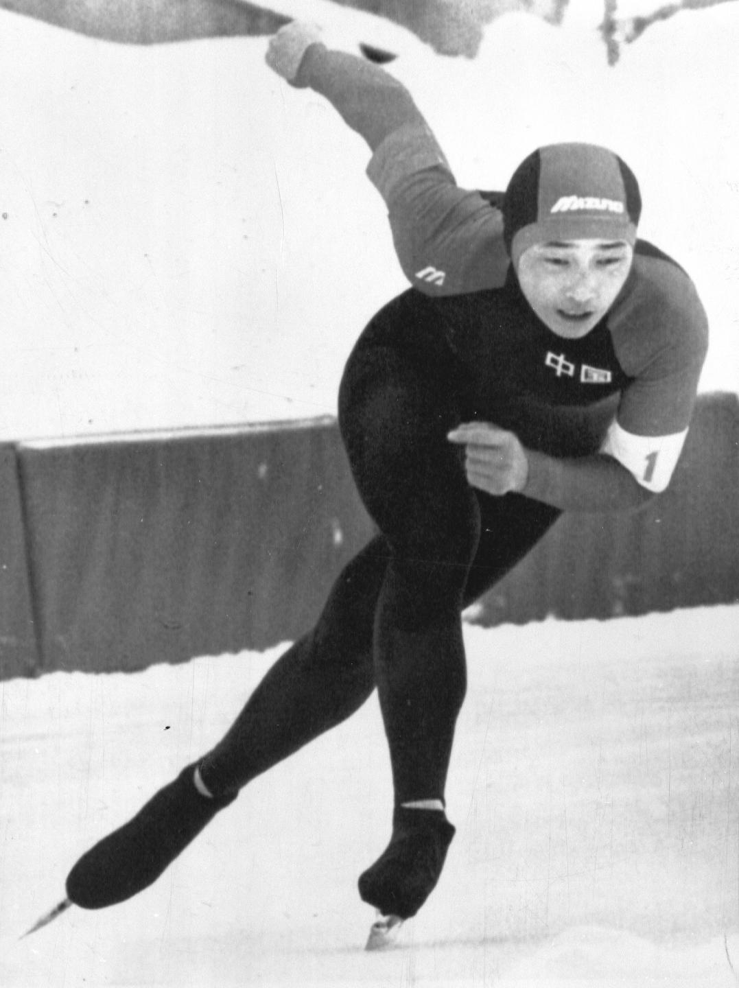 1986年3月3日,中國(guó)運(yùn)動(dòng)員王秀麗在日本舉行的第一屆亞洲冬運(yùn)會(huì)女子1000米速滑比賽中獲得金牌。圖為王秀麗在比賽中。傳真照片(新華社發(fā))