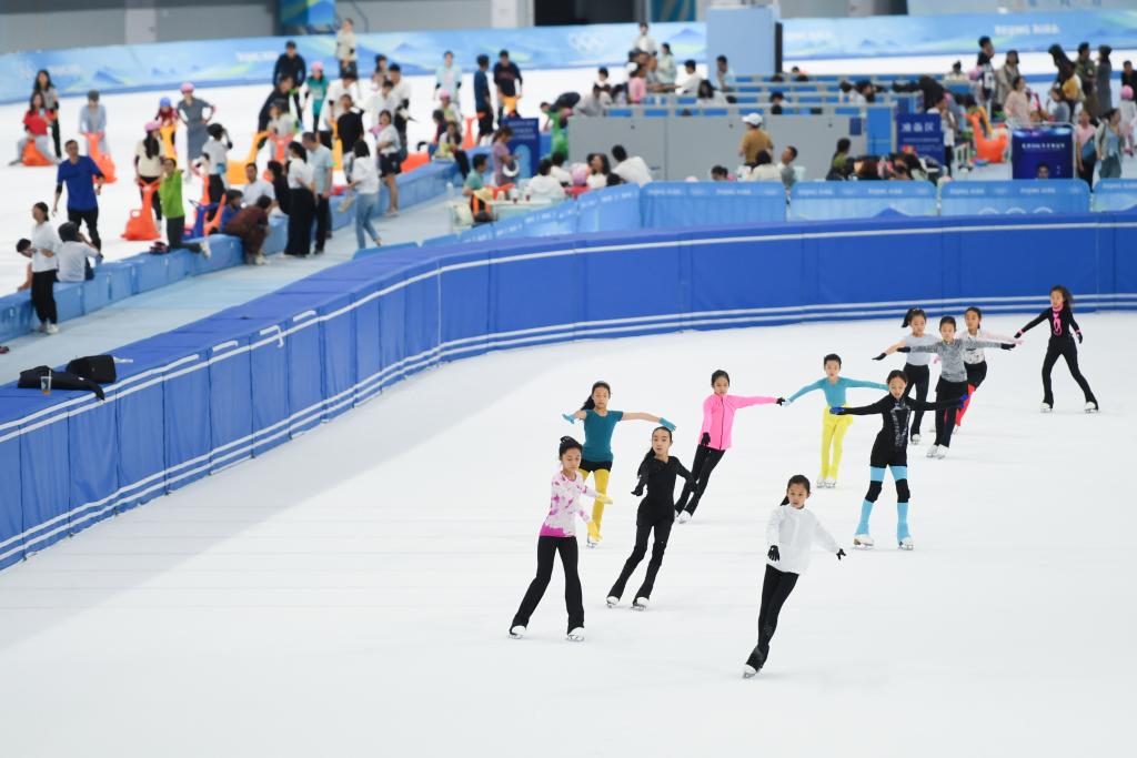 2023年7月1日,小朋友在“冰絲帶”練習(xí)花樣滑冰。新華社記者 鞠煥宗 攝