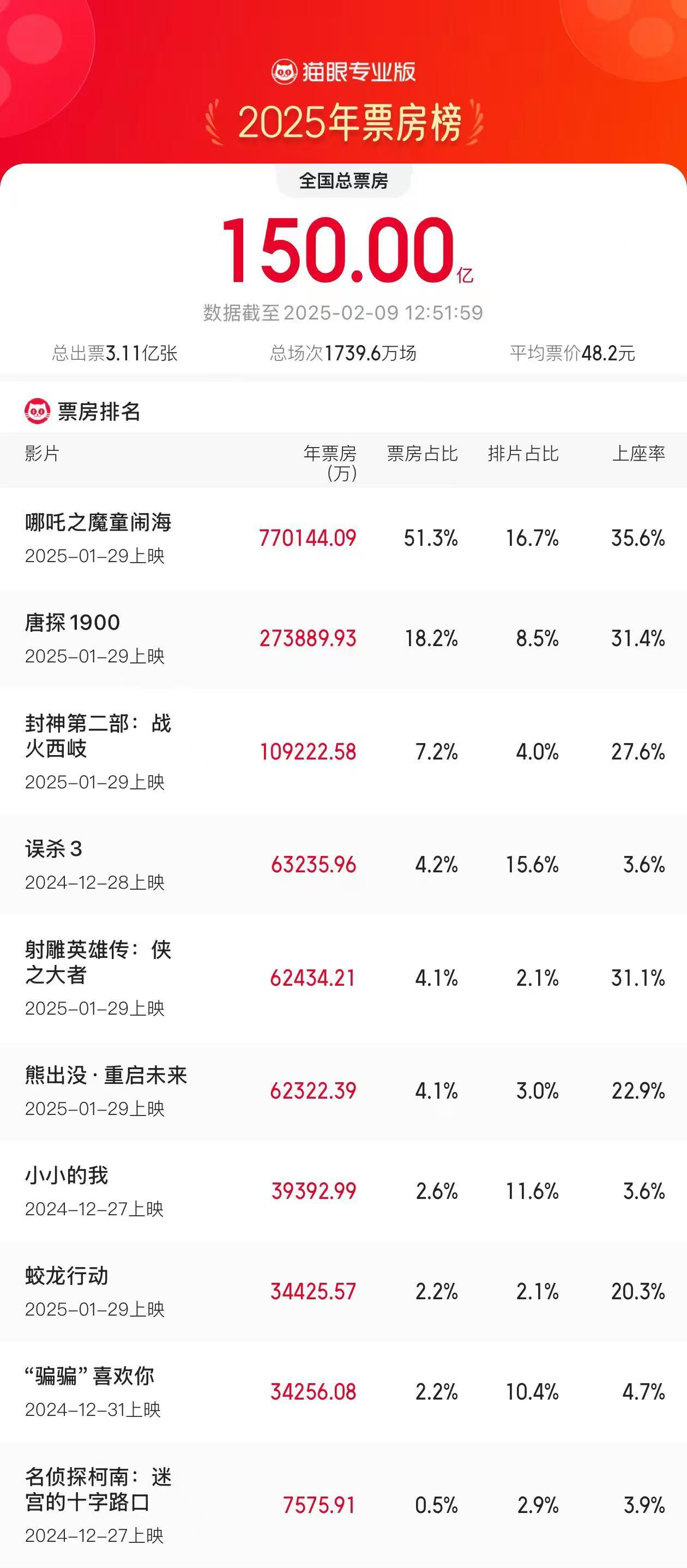 2025年度票房(含預售實時)