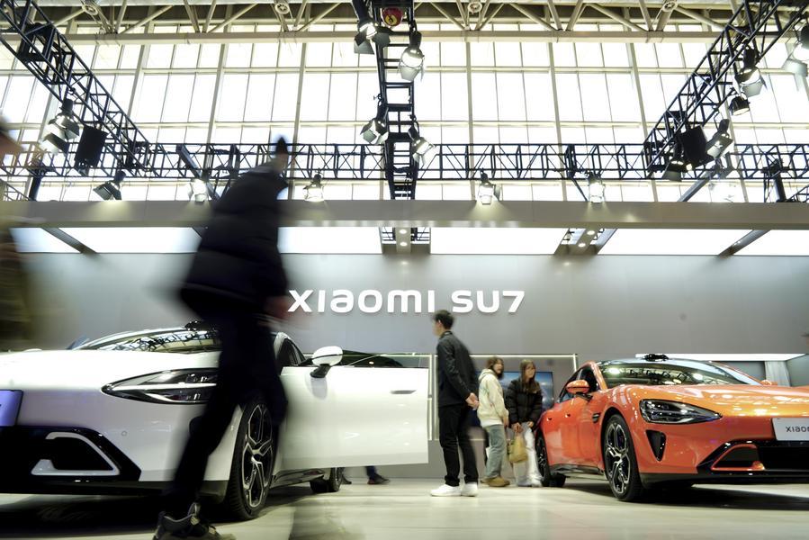 2024年11月28日,人們在第二屆中國國際供應(yīng)鏈促進(jìn)博覽會智能汽車鏈展區(qū)小米汽車展臺參觀。新華社發(fā)(那宇奇攝)