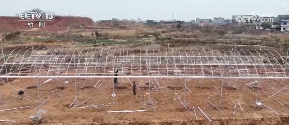 在湖南永州道縣,工人們正在抓緊建設(shè)集中綜合育秧大棚。大棚配套自動(dòng)噴灌、恒溫、通風(fēng)等一體化設(shè)施,可一次性完成覆土、播種、澆水等作業(yè)流程。