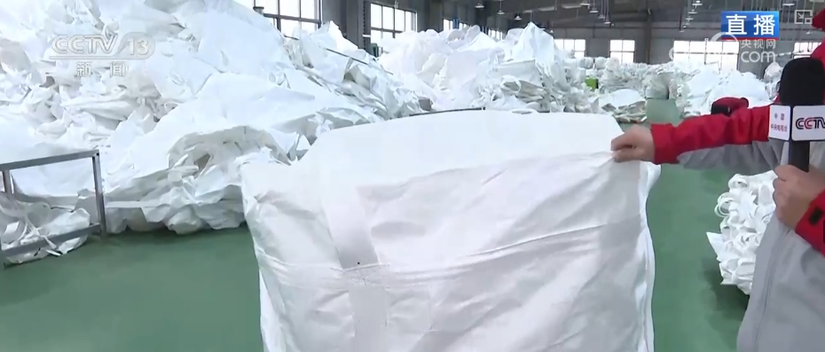 這個(gè)叫集裝袋,俗稱“噸袋”,是化工企業(yè)和冶金企業(yè)等行業(yè)大量使用的耗材。這是一個(gè)能裝三噸重東西的、高質(zhì)量、可出口的集裝袋。