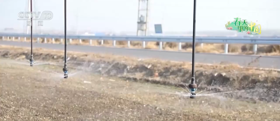 目前,山東東營市廣饒縣的50多萬畝冬小麥進入返青期,當?shù)負屪マr時,利用智慧設備精準“滴灌”,為糧食增產筑牢根基。