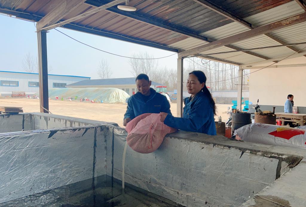 3月6日一大早,安徽省合肥市廬江縣農(nóng)技推廣中心主任吳晨陽(yáng)來(lái)到種糧大戶田素平的合作社,指導(dǎo)早稻育秧工作。只見田素平打開包裝袋,將一袋袋稻種倒入浸種池中。