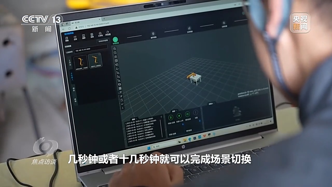 智能機(jī)器人工程師 王晨光:如果要換活兒或者換產(chǎn)線(xiàn),那就需要人工去重新編程,最簡(jiǎn)單的編程工作也需要花費(fèi)半天或者一天的時(shí)間,還有調(diào)試,而繹焊機(jī)器人加持了人工智能,幾秒鐘或者十幾秒鐘就可以完成場(chǎng)景切換,能夠適應(yīng)個(gè)性化的復(fù)雜生產(chǎn)場(chǎng)景。