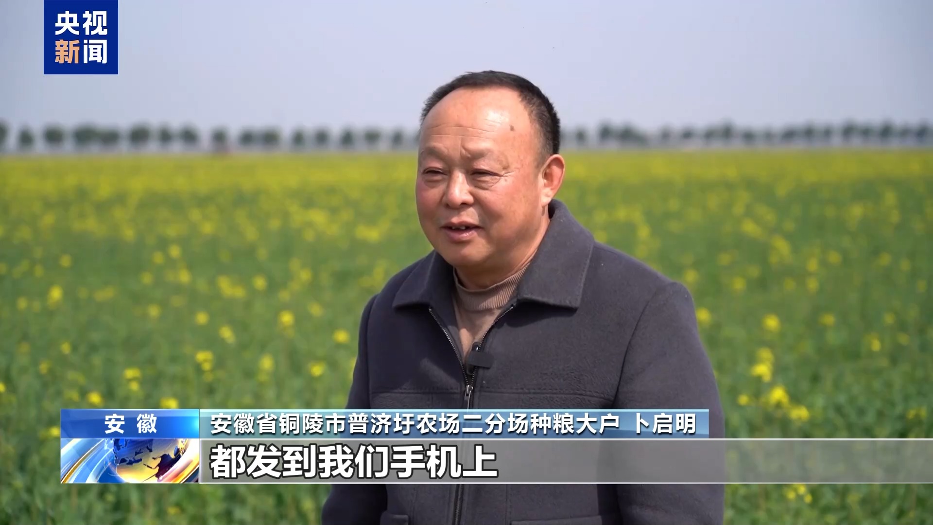 安徽省銅陵市普濟(jì)圩農(nóng)場(chǎng)二分場(chǎng)種糧大戶 卜啟明:以前我們種糧靠天收,在電視上看天氣預(yù)報(bào),現(xiàn)在科技發(fā)達(dá)了,都發(fā)到我們手機(jī)上。