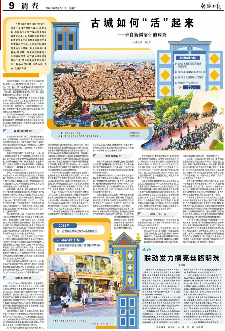 今年的《政府工作報(bào)告》提出,推進(jìn)文化遺產(chǎn)系統(tǒng)性保護(hù),提升文物、非物質(zhì)文化遺產(chǎn)保護(hù)利用和考古研究水平。以古城區(qū)為代表的非物質(zhì)文化遺產(chǎn)是中華優(yōu)秀傳統(tǒng)文化的重要組成部分,是中華文明綿延傳承的生動(dòng)見證。作為古絲綢之路重鎮(zhèn),新疆喀什近年來不僅通過立法等多種形式,對(duì)古城加強(qiáng)系統(tǒng)性保護(hù)工作;同時(shí)注重在保護(hù)基礎(chǔ)上加以科學(xué)合理利用,建設(shè)宜居、宜業(yè)、宜游的古城。