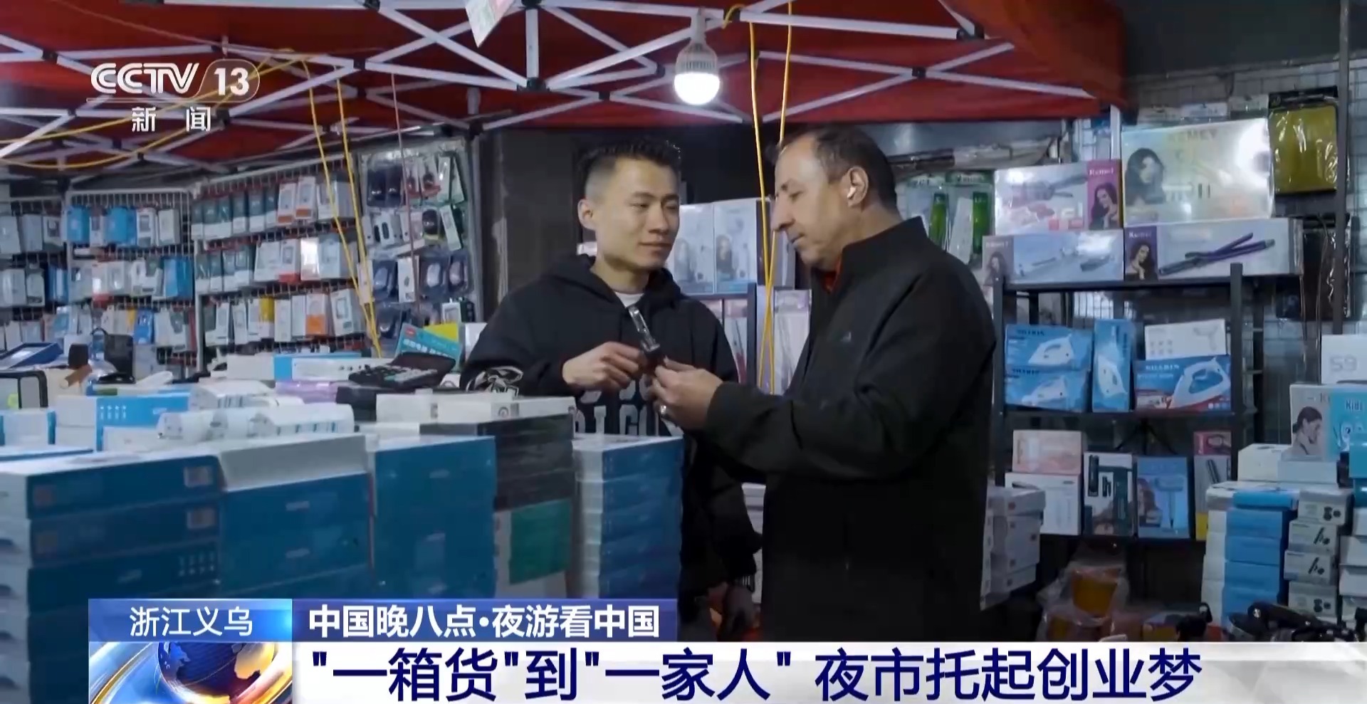 從一件貨品,到一箱貨,如今擁有一個固定的攤位,他不僅收獲了穩(wěn)定的客源,甚至和外國客商成了朋友,夜市讓他收獲了事業(yè),讓他遇見了自己的另一半,他說,在夜市讓他覺得“生活,就是要生機勃勃地奮斗著”。
