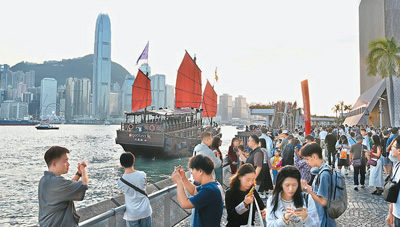 旅客在香港尖沙咀星光大道一帶游玩。 中新社記者 李志華攝