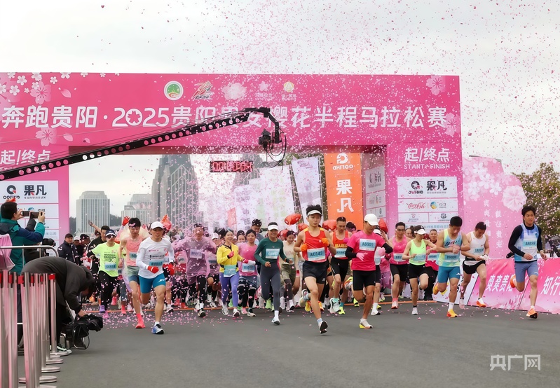 貴陽(yáng)貴安櫻花半程馬拉松賽激情開(kāi)跑(央廣網(wǎng)發(fā) 貴陽(yáng)市委宣傳部供圖)