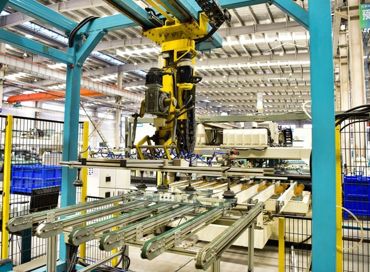 這是4月14日在安徽合肥長(zhǎng)豐縣拍攝的一新能源汽車配套企業(yè)的玻璃生產(chǎn)線。