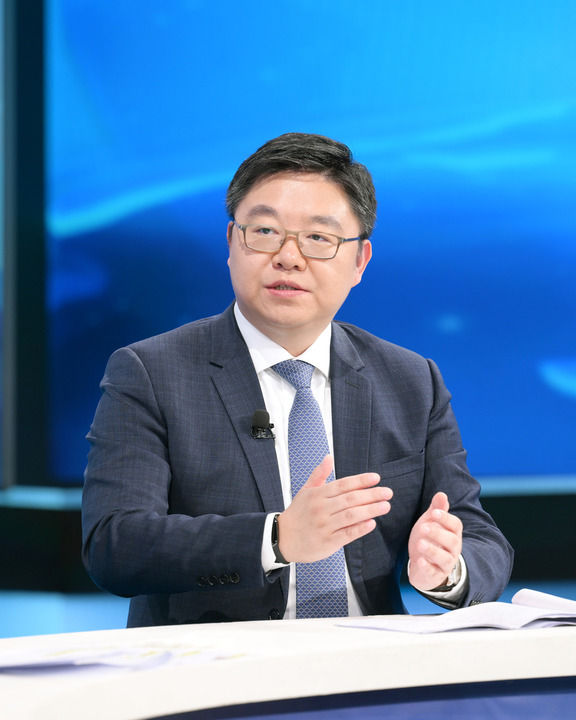 國家發(fā)展改革委民營經(jīng)濟(jì)發(fā)展局副局長劉民在第十五期“中國經(jīng)濟(jì)圓桌會”錄制現(xiàn)場發(fā)言。新華社記者 李賀 攝