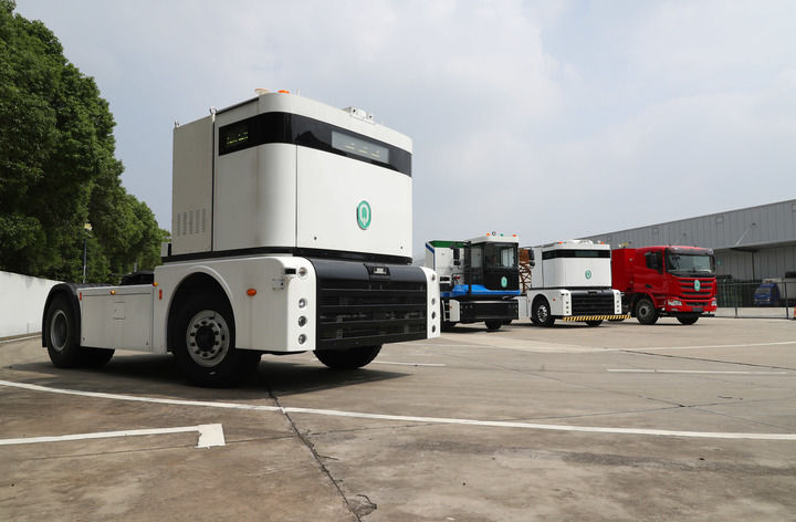 2023年9月26日,一輛西井科技的無人駕駛重卡Q-Truck(前)在位于上海的無人駕駛商用車聯(lián)合實(shí)驗(yàn)室場地上進(jìn)行動態(tài)測試。新華社記者 方喆 攝