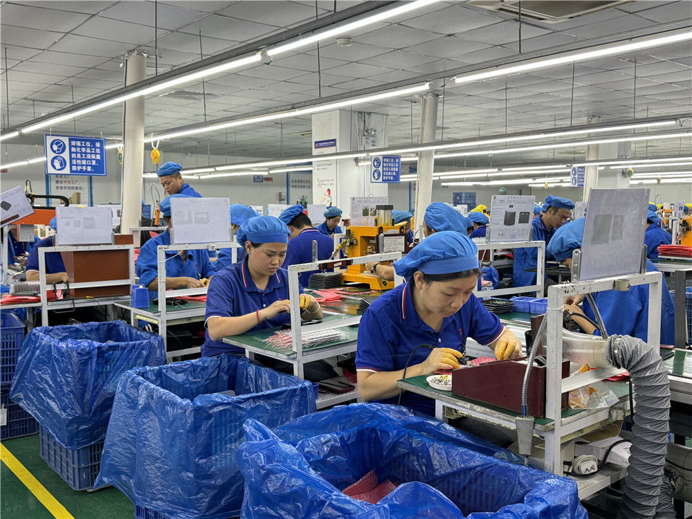 工人在廣西北流泰宏達(dá)電子有限公司車間內(nèi)忙碌(2024年12月9日攝)。新華社發(fā)(李洪健 攝)