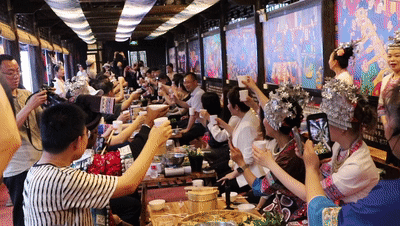 廣西旅游發(fā)展集團有限公司程陽八寨景區(qū)辦公室主任黃能盛表示,今年一季度,景區(qū)的旅游接待量大約為23萬人次,整個景區(qū)的旅游綜合收入約為2800萬元,同比增長約15%—20%?!按逭锩嬉恍┘w經(jīng)濟經(jīng)營的百家宴服務(wù)項目,平時來說可能每一餐會有兩三百人用餐,但是一到節(jié)假日就是每一天每一餐都有六七百人用餐,完全是供不應(yīng)求的?!秉S能盛說。