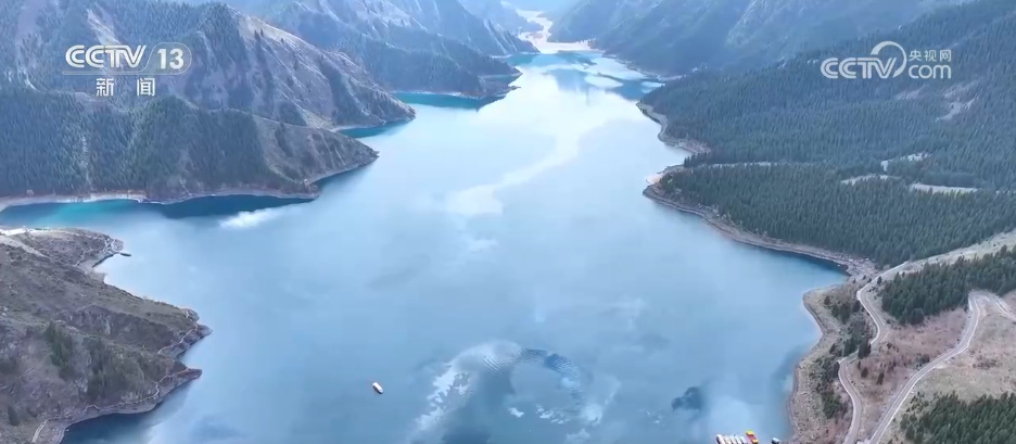 每年冬天,海拔1900多米的天山天池湖面封凍,封凍期達100多天?!拔逡弧鼻跋?,新疆阜康市天山天池景區(qū)冰雪消融,正式迎來“開湖”。