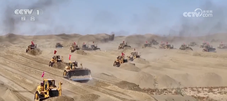 在位于塔克拉瑪干沙漠南緣的新疆昆玉市,7.38萬畝土地開發(fā)建設(shè)項(xiàng)目進(jìn)入攻堅(jiān)階段。上百臺(tái)裝載機(jī)、平地機(jī)在沙海中來回奔忙,原本丘壑縱橫的流動(dòng)沙丘經(jīng)過連續(xù)作業(yè),逐漸變得平整,顯露出田壟的輪廓。