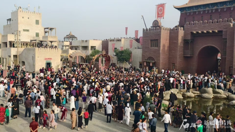 “五一”假期,和田約特干故城景區(qū)人流如織。 和田地區(qū)文化體育廣播電視和旅游局供圖