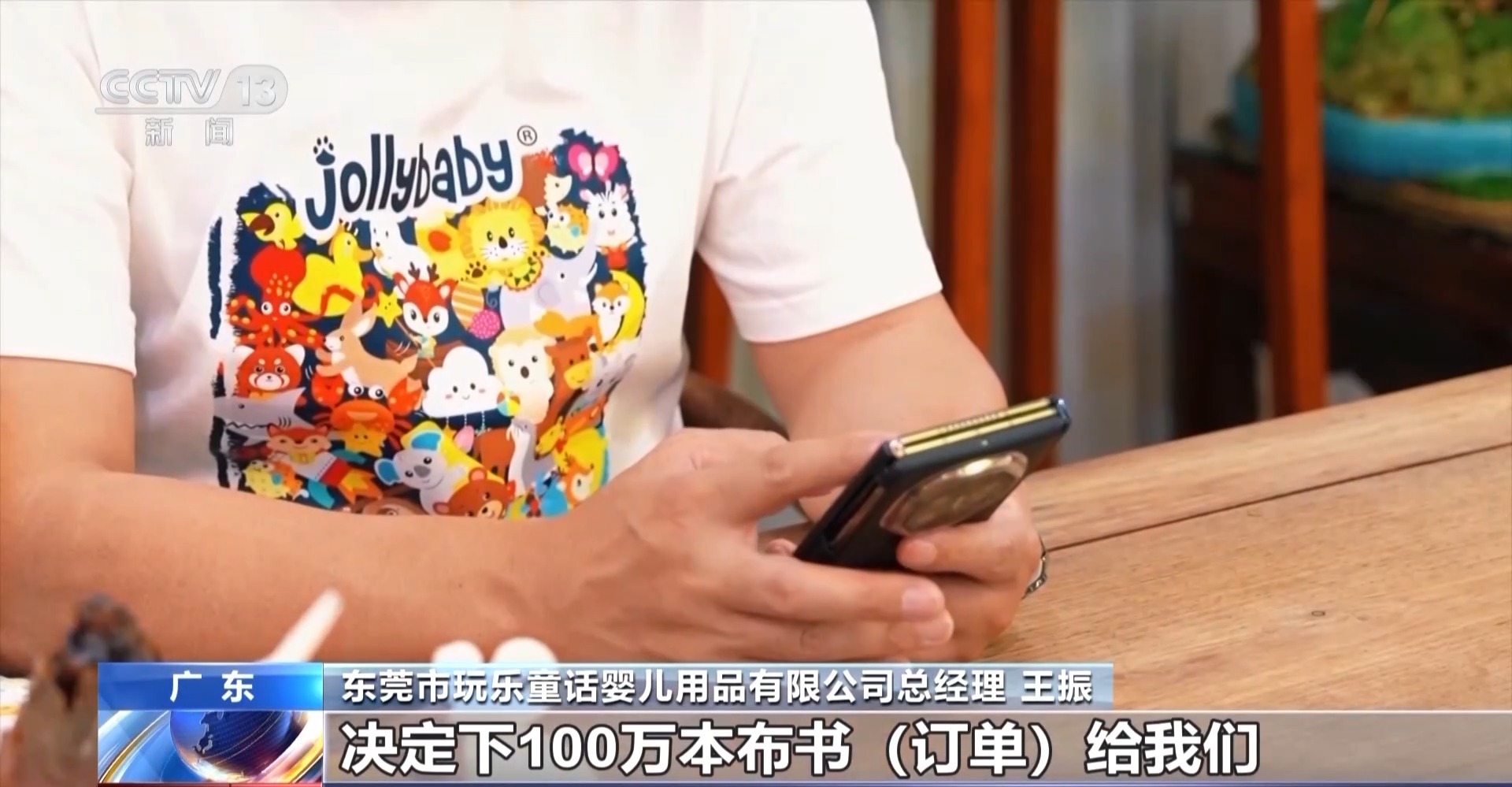 東莞市玩樂童話嬰兒用品有限公司總經(jīng)理 王振:到晚上12點多他們就發(fā)信息給我,決定在我們這里下100萬本布書訂單,當(dāng)時我們大家非常非常興奮。