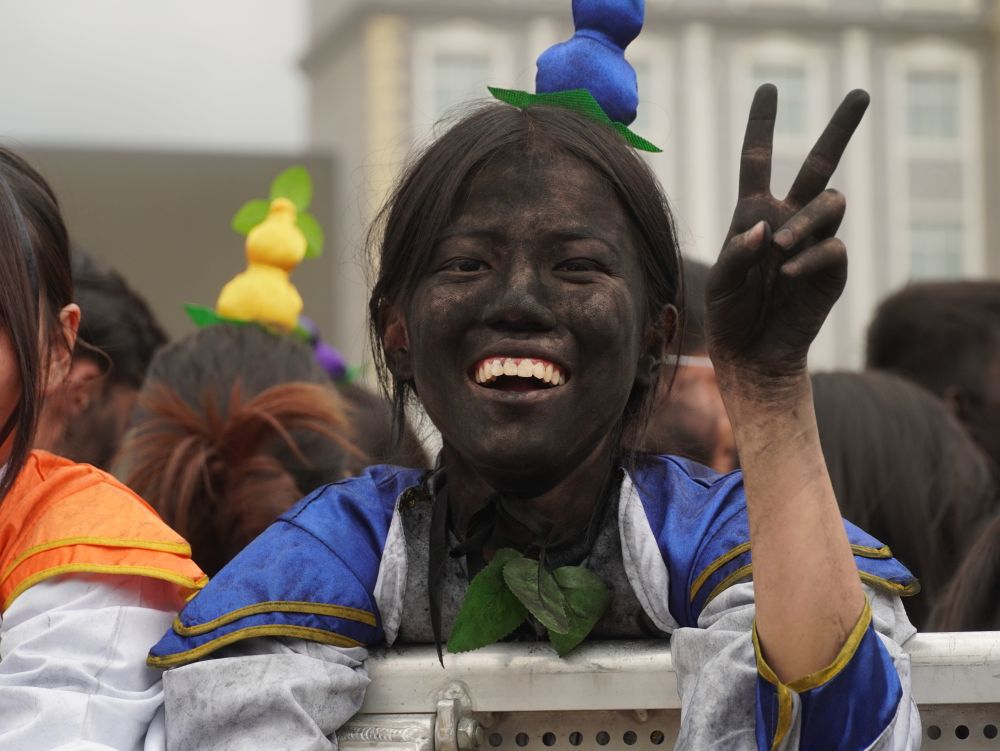 楊春德表示,今年的抹黑臉?lè)凼怯?0%的咖啡粉和40%的植物碳黑組成,也是免費(fèi)向游客提供?!拔覀兊哪ê诜垡呀?jīng)達(dá)到了可食用的級(jí)別,在抹黑的同時(shí)可以聞到淡淡的咖啡的清香味,有效提高了我們廣大游客的體驗(yàn)感”,他說(shuō)。