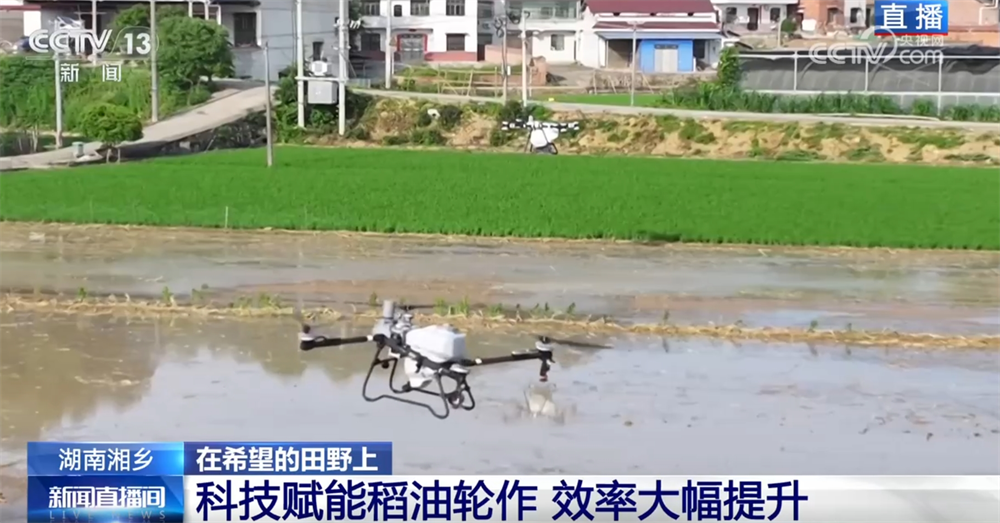 在這個階段,還有一件非常重要的工作就是施肥。眼下,施肥已經(jīng)很少依靠人工了?,F(xiàn)場,大型的農(nóng)業(yè)無人機(jī)正在作業(yè),肥料均勻灑在田里。無人機(jī)還能做到自動避障、自動調(diào)節(jié)噴灑量,配備光譜儀還可以檢測莊稼的長勢,作業(yè)1畝地只需要不到20秒。