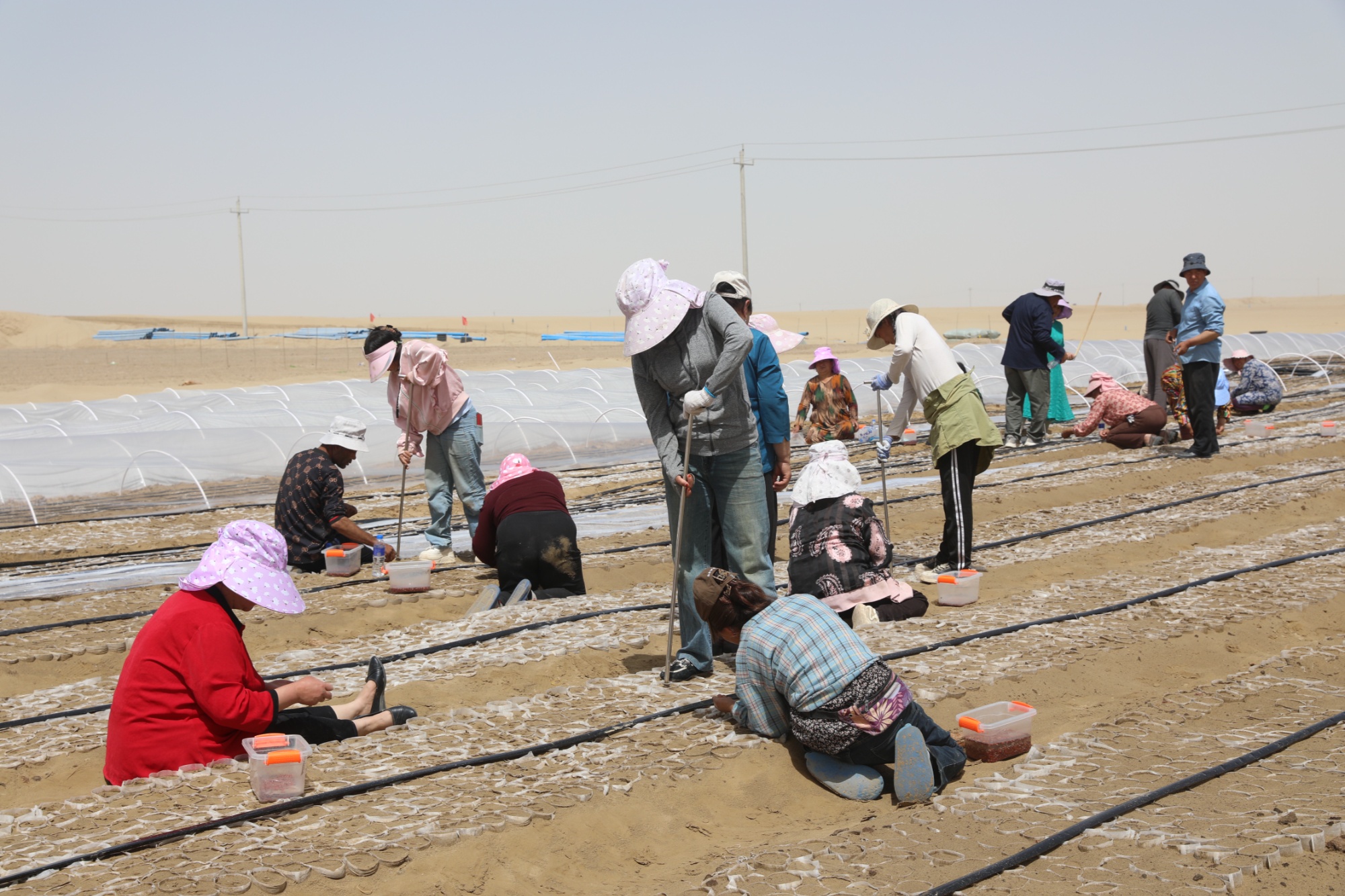 技術(shù)人員手把手教周邊群眾如何育苗 (日孜完古麗·買吐地 攝)