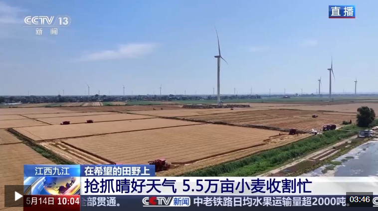 江西九江:搶抓晴好天氣 5.5萬(wàn)畝小麥?zhǔn)崭蠲?/p>