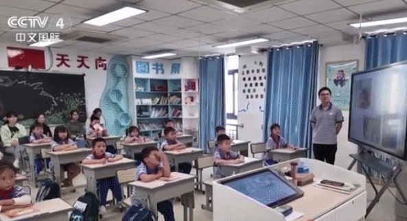 圖為師生在課堂上通過(guò)AI技術(shù)學(xué)習(xí)古詩(shī)。