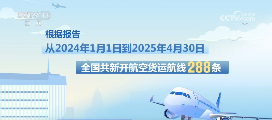 根據(jù)報(bào)告,從2024年1月1日到2025年4月30日,全國(guó)共新開航空貨運(yùn)航線288條。其中,國(guó)際航空貨運(yùn)航線243條,航線網(wǎng)絡(luò)覆蓋全球六大洲。亞洲航線數(shù)量最多,占比接近50%;其次是歐洲航線88條;北美航線29條,排在第三位。新開國(guó)際貨運(yùn)航線承運(yùn)貨物最多的前三名,分別是電商貨物、電子產(chǎn)品、普通貨物。