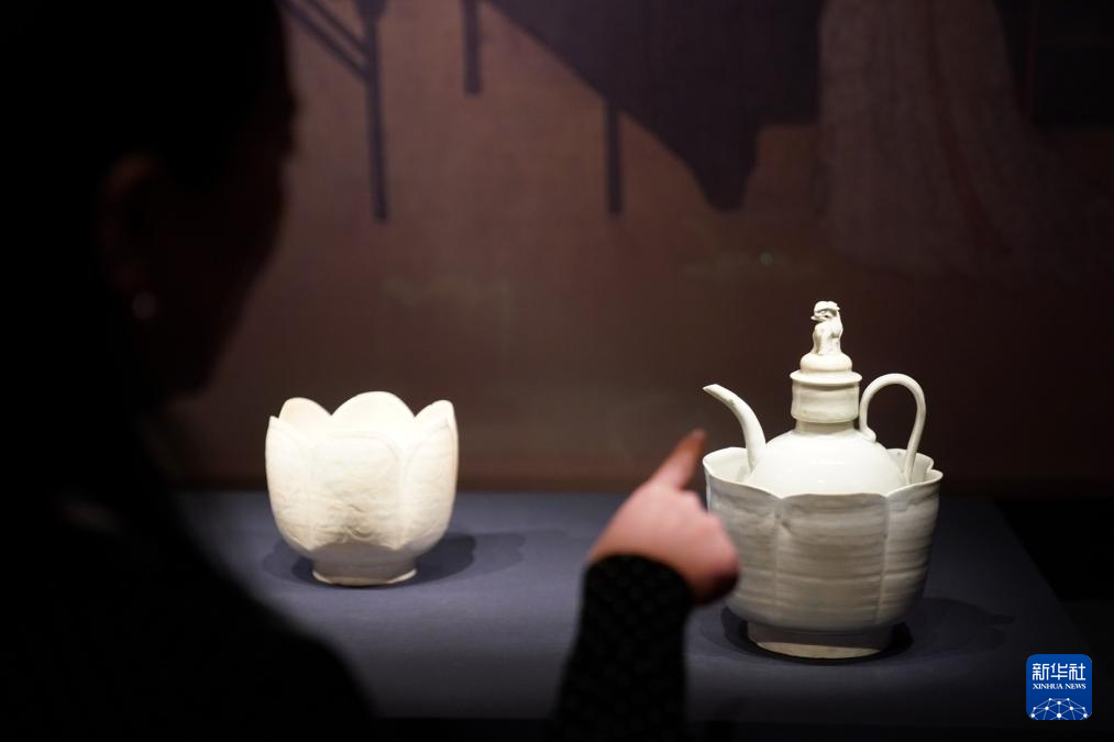 繼續(xù)前行,便來到“跨越文化——胡食風(fēng)尚”單元。故宮博物院藏唐代鳳首壺與舊金山亞洲藝術(shù)博物館藏鳳首壺“并肩而立”,它們獨特的把手與流口設(shè)計,仿佛訴說著胡人傾注式倒酒習(xí)俗對中原的影響。
