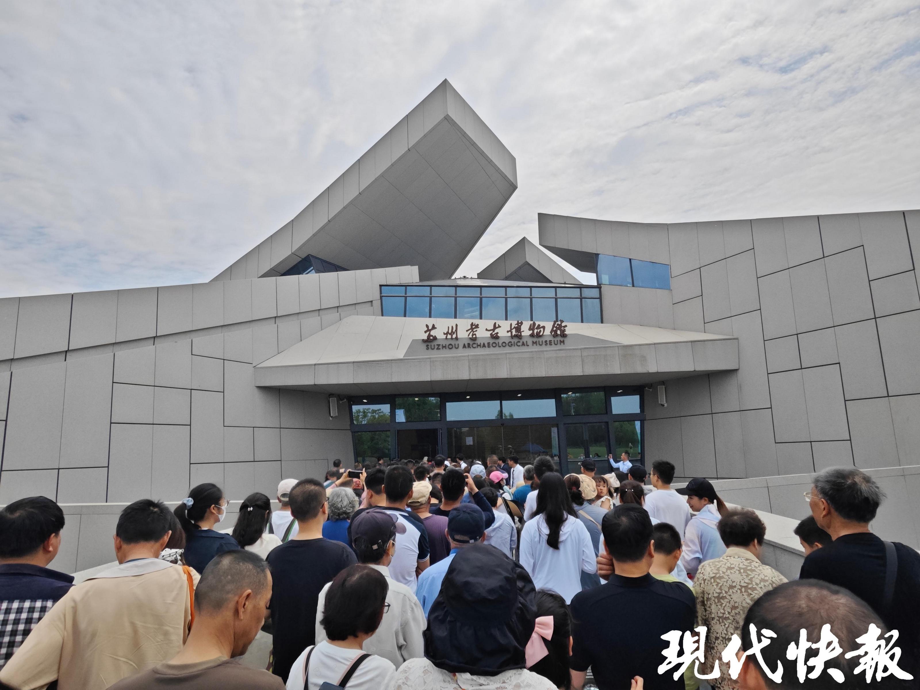 5月17日,江蘇首家考古博物館——蘇州考古博物館正式對公眾開放?!皼]想到一開門就迎來了大客流考驗,一天接待了8000多名觀眾?!碧K州考古博物館館長、蘇州考古所所長程義坦言,沒想到一開館就成了網紅?!疤K州考古博物館和蘇州博物館老館面積差不多大,最大承載量在6000人左右,8000人次屬于超負荷運營。”