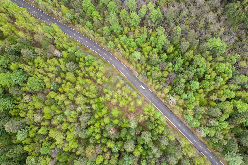 2024年7月11日,游客乘坐電瓶車在伊春市上甘嶺溪水國(guó)家森林公園內(nèi)穿行(無人機(jī)照片)。新華社記者 張濤 攝