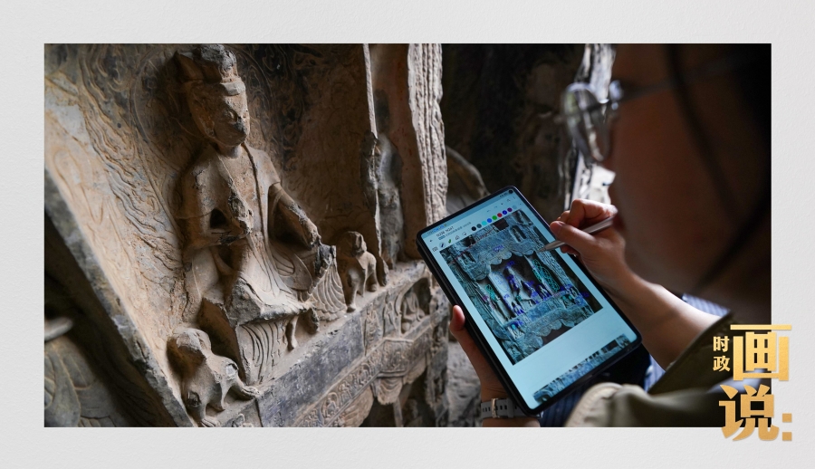 工作人員在對石刻病害情況進(jìn)行詳細(xì)記錄