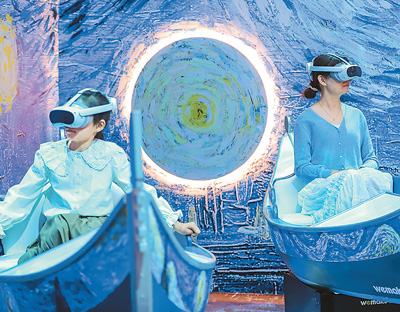 4月20日,游客在山東青島世博園XR梵高數(shù)字藝術體驗館進行數(shù)字產(chǎn)品體驗。張 鷹攝(人民視覺)