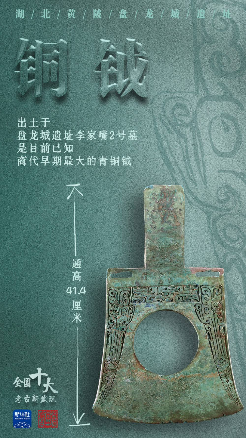 出土于盤(pán)龍城遺址李家嘴2號(hào)墓的銅鉞