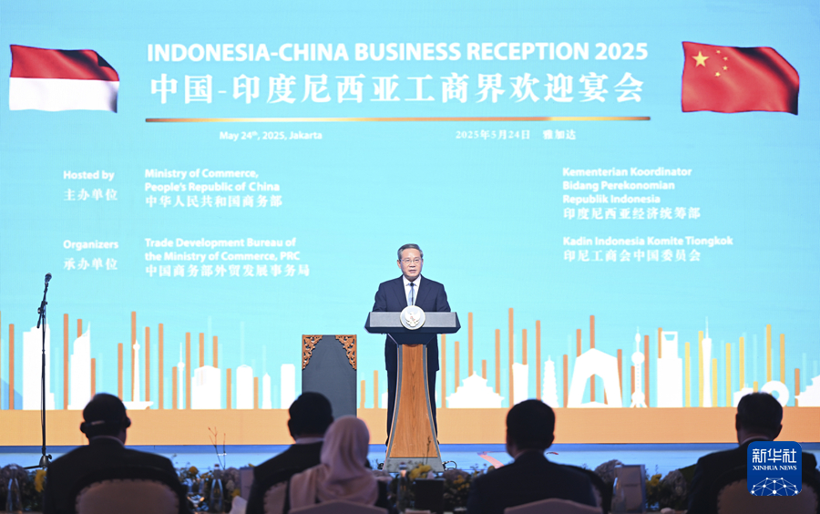 當(dāng)?shù)貢r(shí)間5月24日晚,國務(wù)院總理李強(qiáng)在雅加達(dá)同印度尼西亞總統(tǒng)普拉博沃共同出席中國-印尼工商界晚宴并致辭。兩國約200名工商界代表參加。