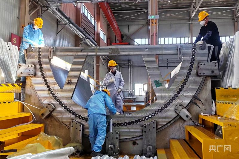 不遠(yuǎn)處的中水四局(塔城)能源裝備有限公司,正開足馬力生產(chǎn)6米直徑的分片式塔筒?!懊慷嗡埠附诱`差必須控制在毫米級?!笨偣こ處熗粑迨慕榻B,企業(yè)年產(chǎn)400套塔筒的生產(chǎn)線已滿負(fù)荷運(yùn)轉(zhuǎn),去年9月到今年四月有24套出口哈薩克斯坦,今年已承接100多套訂單。