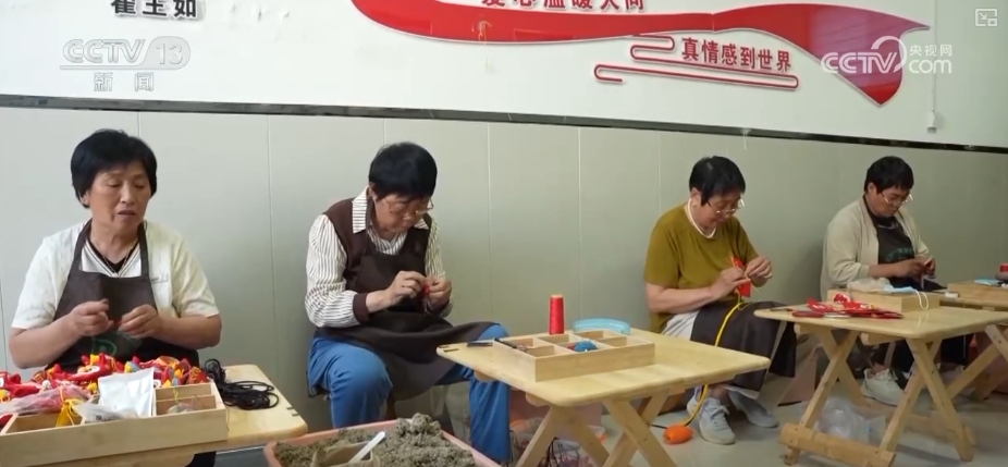 走進(jìn)生產(chǎn)工作室,工人們正專注地縫制香囊。
