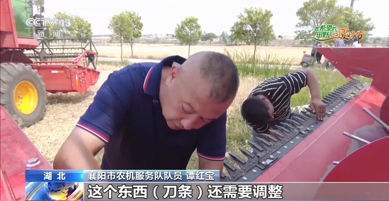 農(nóng)機(jī)維修也是夏收中非常重要的一個(gè)環(huán)節(jié)。在湖北省襄陽(yáng)市襄州區(qū)黃龍鎮(zhèn)潘明村的1000畝大田里,6臺(tái)收割機(jī)正趕在雨前搶收。突然,一臺(tái)收割機(jī)出現(xiàn)故障止步不前,機(jī)手撥打維修電話20分鐘后,農(nóng)機(jī)服務(wù)車趕到了麥田旁。經(jīng)過檢修發(fā)現(xiàn),這臺(tái)收割機(jī)刀條發(fā)生了斷裂。