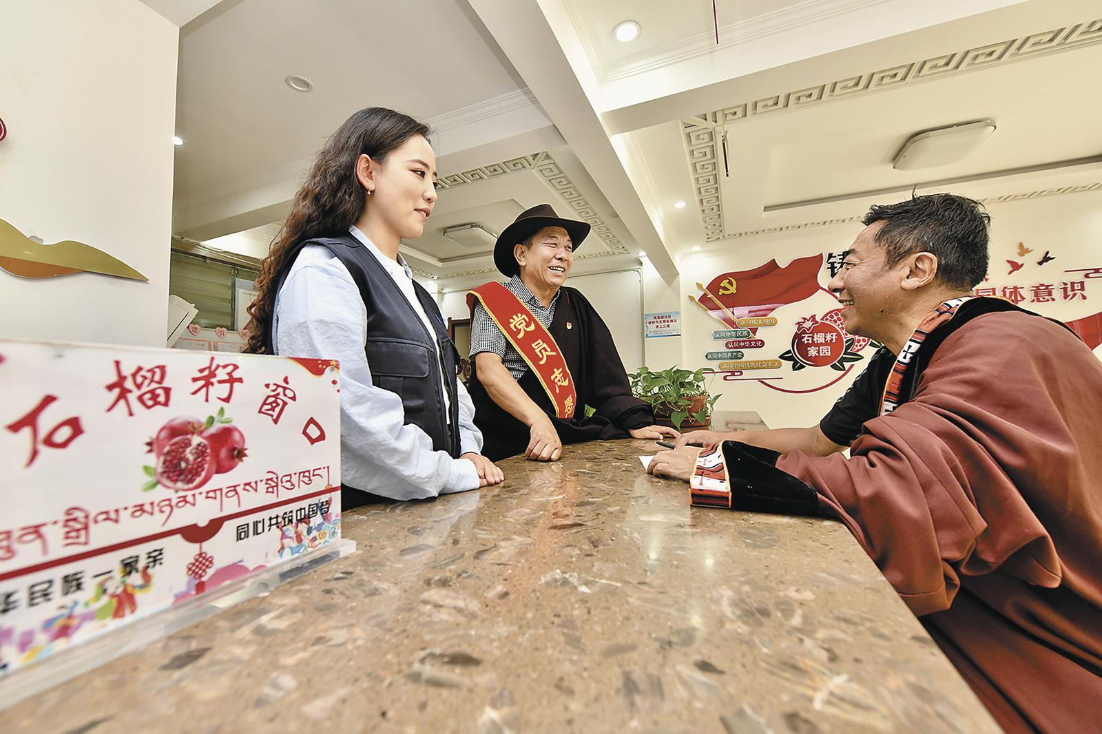 “你看,這是藏語版的宣傳冊。之前您反映惠企政策的宣傳手冊看不懂,青海警官職業(yè)學(xué)院的老師為我們做了翻譯,這下能看懂了吧!”在位于西寧市城中區(qū)南灘街道建新社區(qū)的扎閣林民族歌劇院內(nèi),社區(qū)黨委副書記楊麗手拿雙語宣傳冊,開心地找到了經(jīng)理完么才讓。